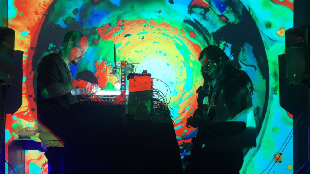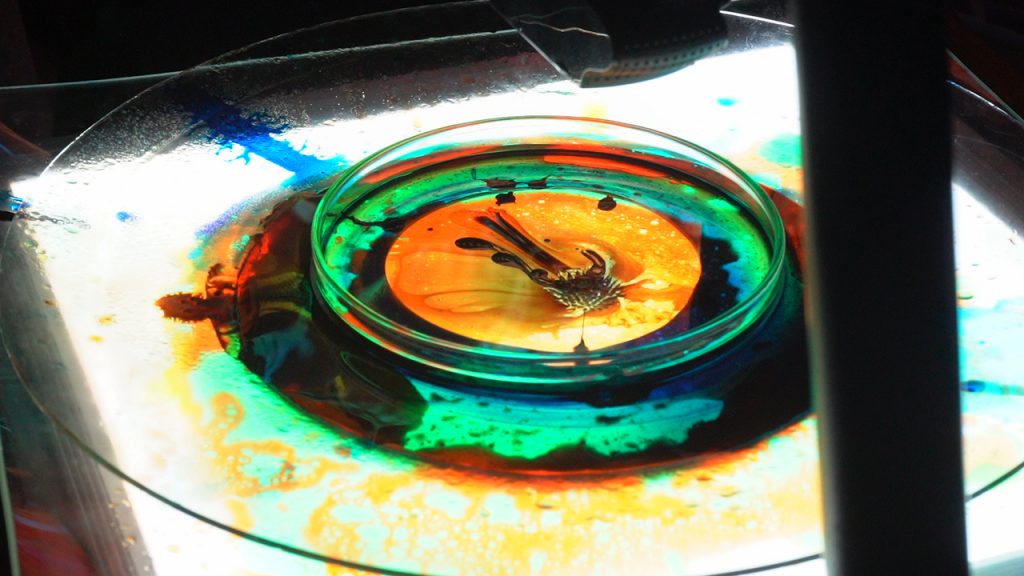 !ME es un artista multimedia, cántabro residente en Barcelona, que se mueve entre la fotografía, el videoarte y la programación, lo que le ha llevado a investigar con video algorítmico y visuales generativos, reactivos e interactivos. Es vj residente en la sala Apolo Canibal desde el año 2015, y colabora, realizando visuales en directo, con varias bandas de música y artistas de todo tipo (electrónica experimental, danza, teatro interactivo). En éste proyecto con Linalab utiliza elementos de visuales generativos y audio reactivos, dando un pequeño toque de tecnología a los visuales de liquid light (visuales realizados utilizando líquidos, tintas y reacciones químicas en directo).